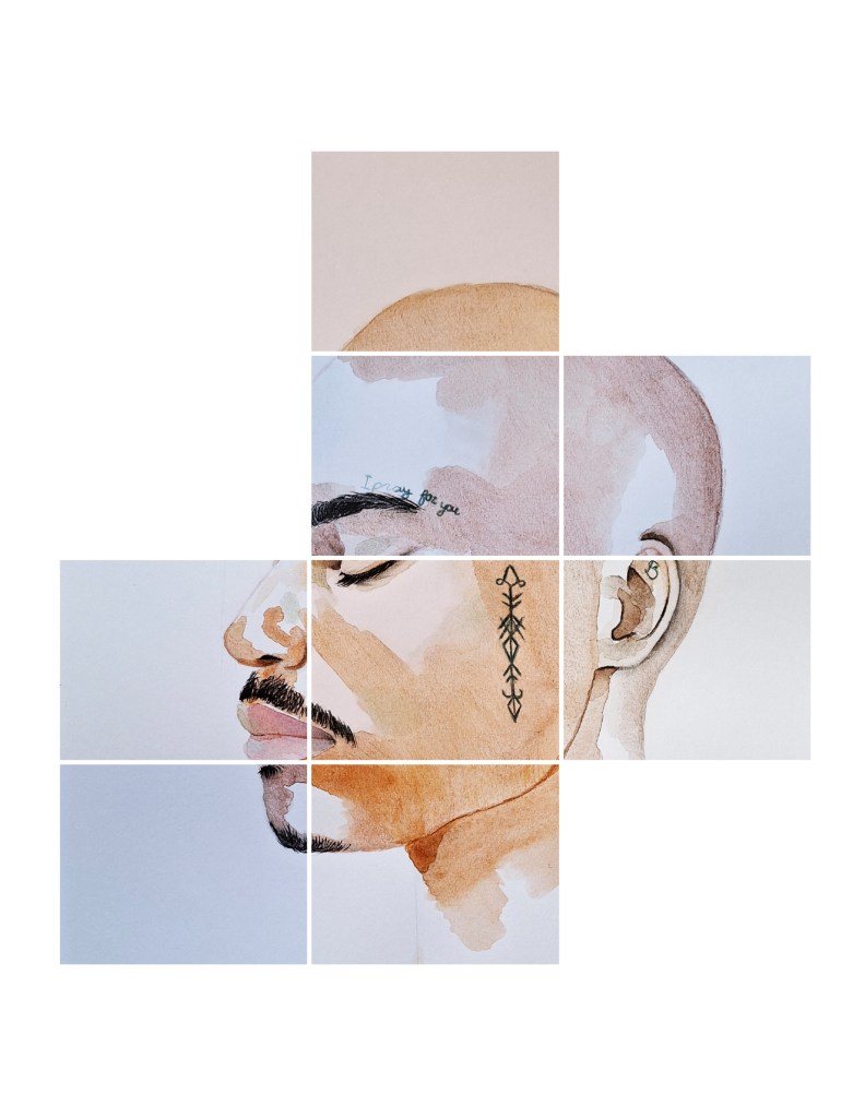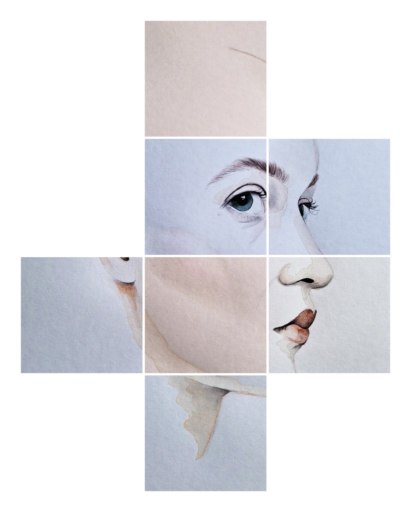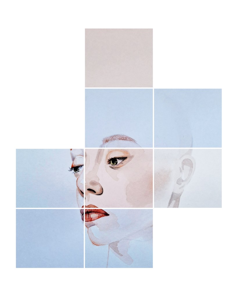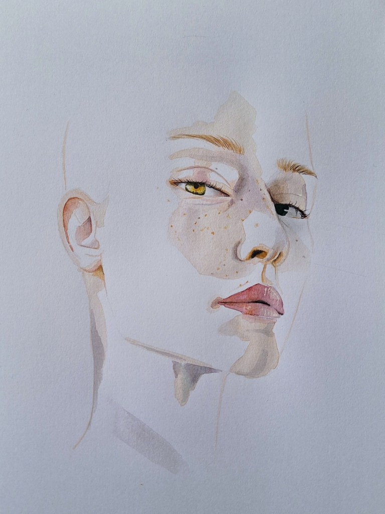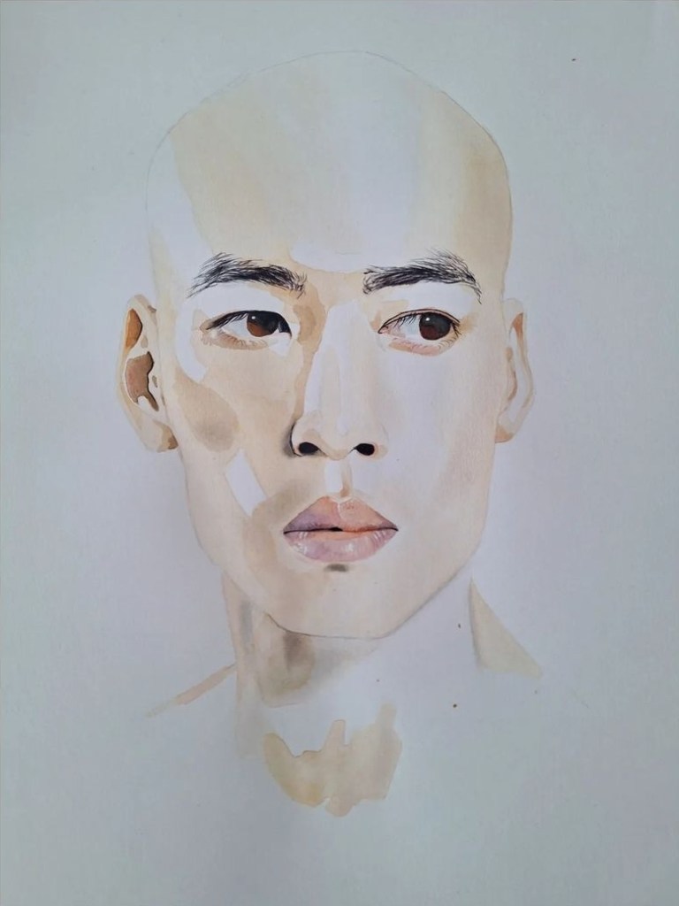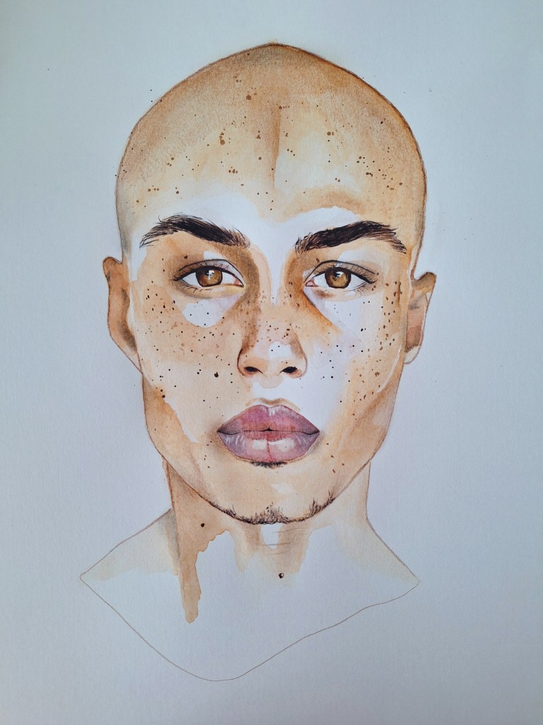 Deze serie portretten in waterverf (in totaal 40 stuks) laten heel diverse portretten zien, divers in kleur, uitstraling, blik en compositie. Geen enkel portret heeft haar, want het portret draait voor mij om het gezicht, haar is bijzaak.